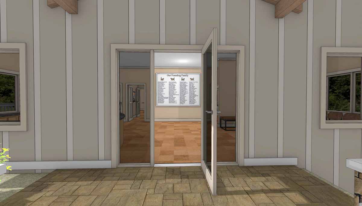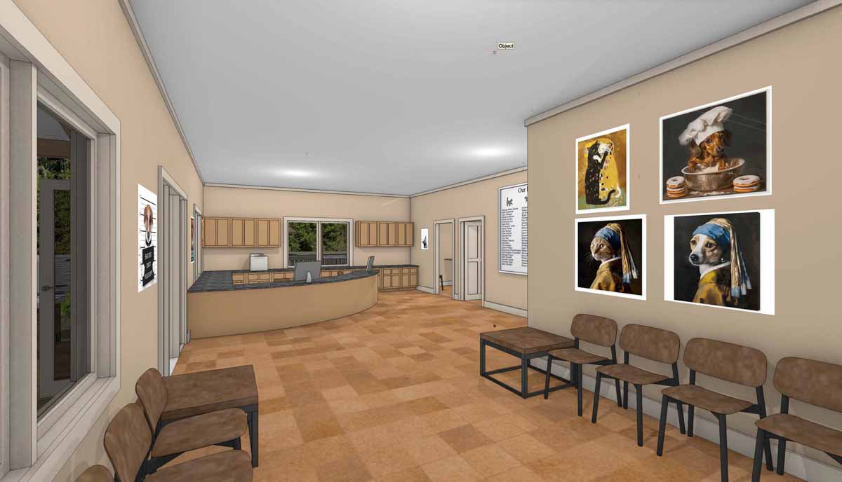 The two-story CHHS Veterinary Clinic will feature a 2,280 sq. ft. clinic on the main parking lot level, with two exam rooms, a main treatment and dental area with a lab and pharmacy, a surgical suite, a room for pre- and post-op recovery, x-ray room and isolation area. The lower level of the building is a 2,280 sq. ft. two-bedroom two-bath apartment for the veterinarian to live onsite. Currently the CHHS shelter manager and assistant shelter manager both live on campus in two of the CHHS “caretaker cottages."